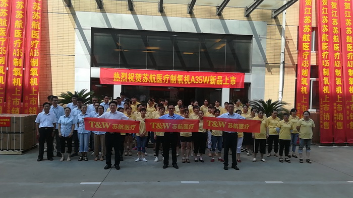 Banners were hung all over the factory area during the festive moment, with products sorted out neatly for departure and blessings expressed by the surge of people. At 9:00 a.m. on August 13, the staff of Suhang Medical held a ceremony for the marketing, sale and delivery of the new product oxygenerator A35W.