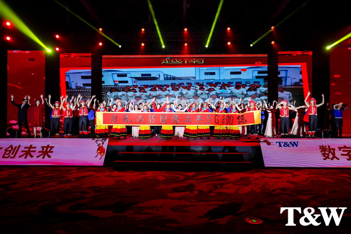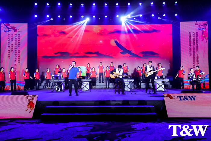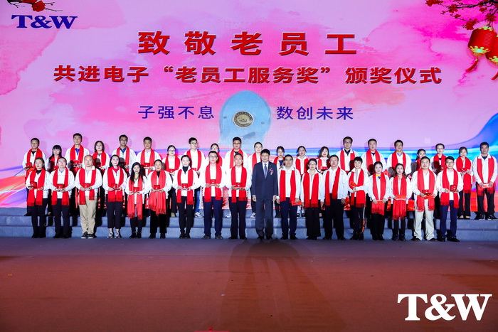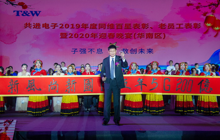 Commending the advanced, thanksgiving for the veterans and celebrating the New Year together by singing and dancing. From mid to late January, Gongjin Electronics companies around the country successively held 2019 annual commendation ceremony and 2020 early spring dinner, and all the staff in each region, the senior executives and guests company specially invited attended the party. The company's leaders, general managers Tang and Wang, presented 2019 Annual T&W Hundred-Stars Awards and the Service Award for the seasoned employees. Meanwhile, based on the theme of “Unremittingly Pursue Self-Renewal, Creating the Future Together", the employees from all over the companies have offered a wonderful Spring Festival art show.