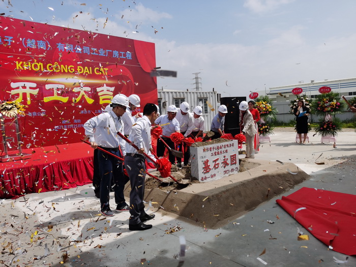 Chen Guozhong, General Manager of Vietnam Gongjin announced the commencement of the project at the ceremony. The leaders and distinguished guests on the spot waved shovels together, tossing sand and soil towards the cornerstone. For a moment, the machines roared, the fireworks were shot off and the applause was deafening. The lively atmosphere on the spot greatly encouraged each party of the construction to keep up high morale.
