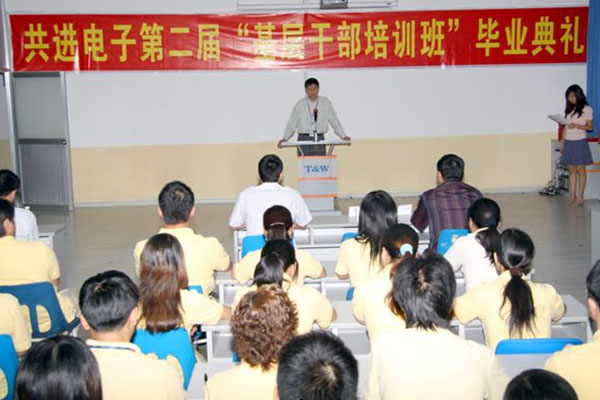 The commencement of the second session of Cadre Training Class was held in the training room (F3, BLD 13, Wenguang Factory) at 3 p.m. on October 29. Wang Dawei (vice general manager), Qi Jianzhong (assistant of the general manager), Wen Wanxing (director of the QC System), Gong Pusheng (production director), Long Xiaojing (manager of the General Management Office), Xue Ketao (manager of the Product QC Dept), Chen Zhijian (manager of the Material QC Dept) and Wang Guoqiang (manager of the Warehousing and Transportation Dept) attended the ceremony. Wang Xuewen, chief trainer of this Cadre Training Class, attended the ceremony and expressed sincere congratulations to all graduated trainees on behalf of the South China University of Technology.