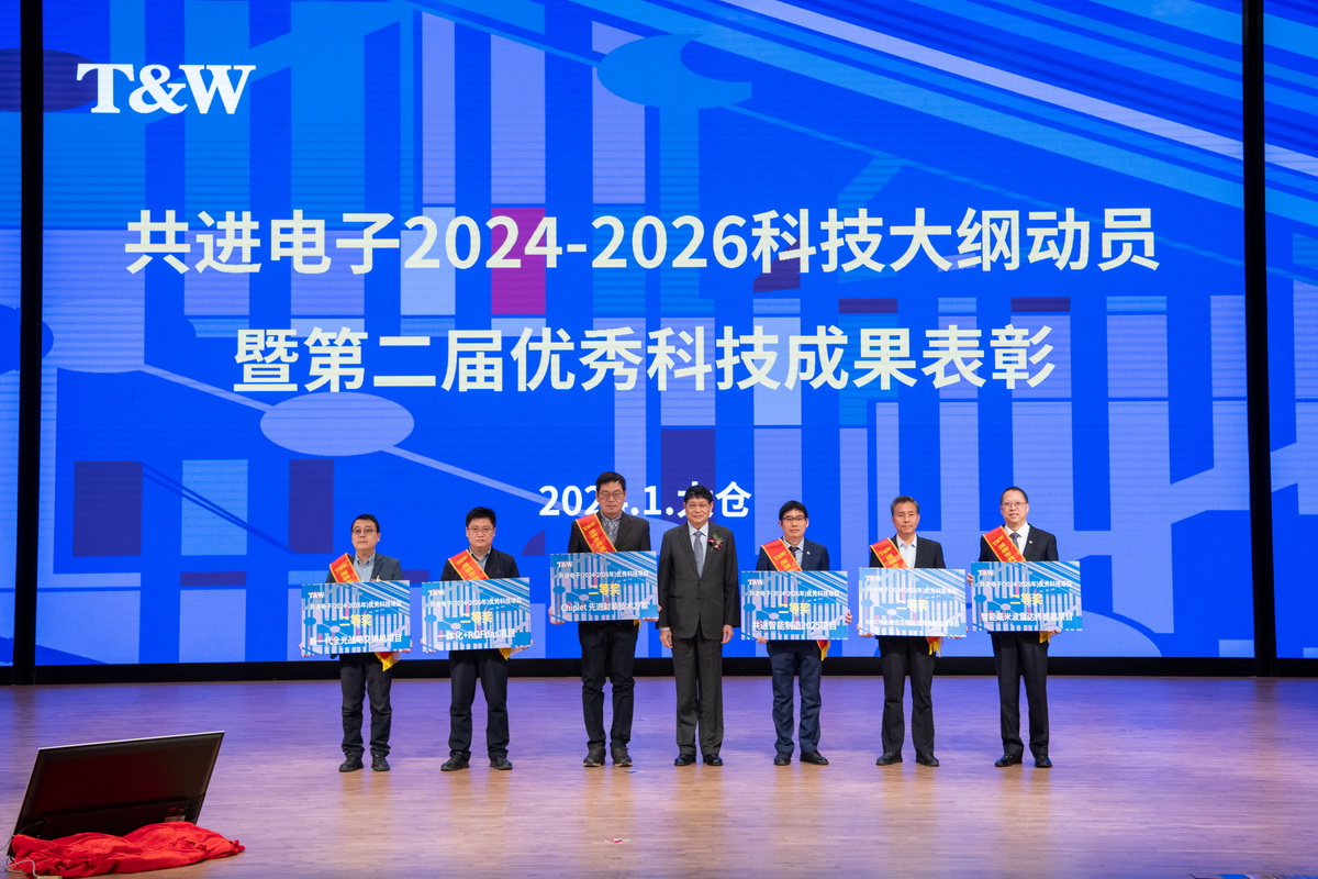 Recognizing the situation, unifying thoughts, promoting the development of high-tech; increasing investment, encouraging all employees to work hard, and roll up their sleeves and work harder. On January 27th, the mobilization of the 2024-2026 science and technology outline and the second session of outstanding scientific and technological achievements commendation conference of Gongjin Electronics was held in the Tongwei Conference Hall in Taicang. The company's chairman Wang Dawei, director of the strategic committee of the board of directors Tang Funan, general manager Hu Zumin, deputy general manager Wei Honghai, Wang Lan, Tang Xiaolin, Long Xiaojing, secretary of the board of directors He Yimeng and other leaders attended the meeting. The conference was held in Taicang as the main venue, with branch venues in Pingshan, Shenzhen, Dalian, Xi'an, Jinan and Vietnam. The general manager of each subsidiary, leaders at the director level of the company, representatives of outstanding science and technology project groups, all party members in East China, all employees above M7 and P4 (positions) in East China, representatives of P5 (positions) technical positions in East China attended the main venue. All employees at or above P7 (positions) level and all party members in all regions of the company as well as representatives of P5 (positions) technical positions in Pingshan and Vietnam factories attended the branch venue.