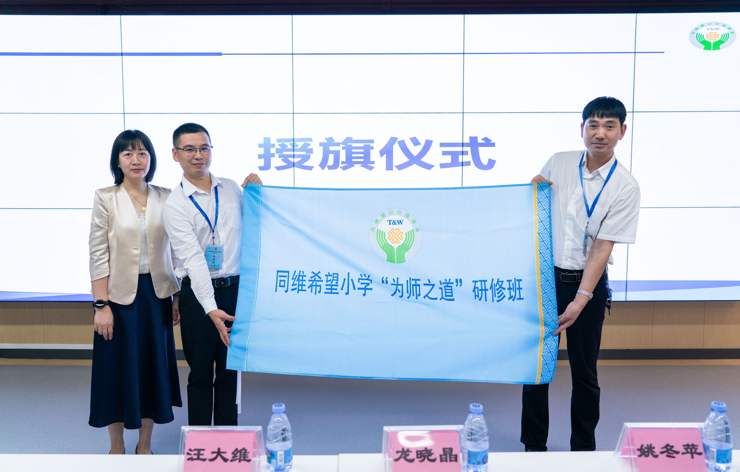 龙晓晶理事长为本期研修班授旗。学员代表、云南喜洲同维希望小学校长杨丽萱发言,并带领学员庄重宣誓。