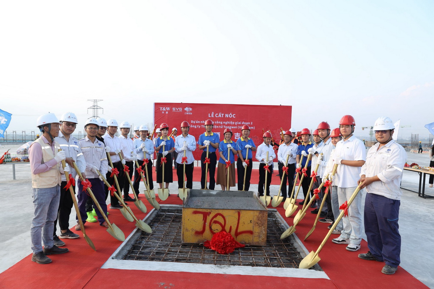 12月13日,越南二期项目举行隆重的封顶仪式。人力行政管理中心总经理谌凯,越南工厂厂长杨金科及基建、宝冶人员参加。