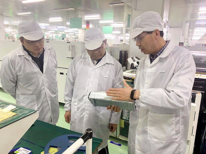 胡副书记首先参观了我司制造一部(SMT)车间,了解生产现场流程,在智能制造、技术改造等方面的投入予以高度肯定,同时还对公司园区的配置、人员情况以及未来发展表示关切,胡副书记还表示,企业在发展建设过程中如有困难,将会积极给予支持。