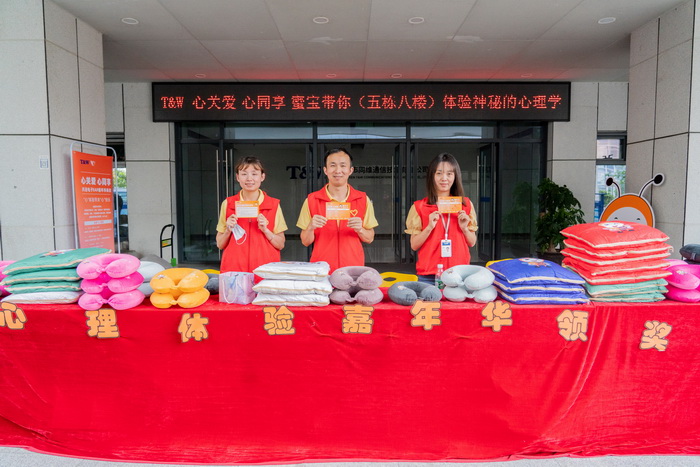 启动会后,华南区EAP嘉年华活动在5栋1楼和8楼向全体员工开放。除1楼“蜜宝”周边纪念品发放摊位外,8楼嘉年华专区还设置了艺术签到、OH卡牌、生物反馈仪、沙盘游戏、健康问诊等5+2个体验项目,5个项目通关者可获赠EAP项目订制纪念品。