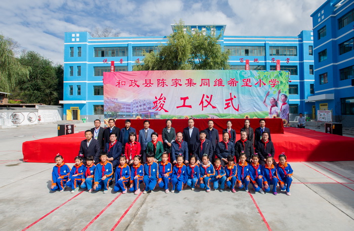 甘肃和政陈家集同维希望小学是同维爱心公益基金会捐建的第九所同维希望小学。该校从踩点、立项、设计到施工建设,历时一年有余,总投入965.85万元。基金会捐资415.85万元,和政县匹配资金550万元。新建教学楼和综合楼各一栋,总建筑面积3376.44平方米,配套建设了大门、国旗台、围墙、给排水管网等室外附属设施。该项目的建成将满足陈家集镇及周边400多名学生的上学难问题。