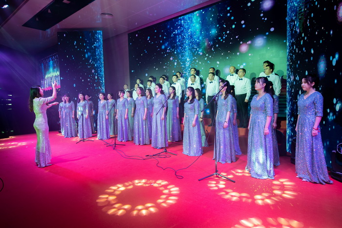 2023新春联欢的帷幕。由高管团队和橙色新人代表组成的同维青蓝合唱团带来了歌曲《星辰大海》,太仓同维合唱团以一曲《让世界赞美你》唱出对祖国的深情告白,音诗舞《同维基建人》、同维爱心公益基金会《向光而行》,以及《华夏少年》《月光下的凤尾竹》《我家在中国》《粉墨花旦》《穆桂英挂帅》《早安同维》等节目精彩登场。整台晚会在全体演职人员的温暖而有力的歌声中圆满落幕。